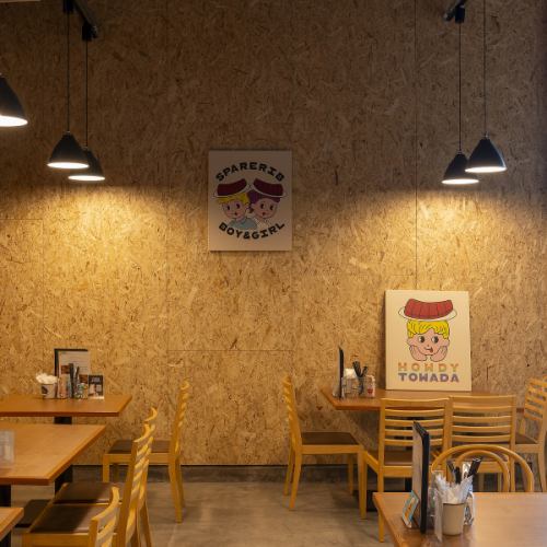 倉庫を改修し、お洒落な写真や絵が飾られた雰囲気抜群の店内!
